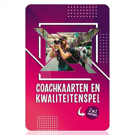 Het coachkaarten en kwaliteitenspel is een 2-in-1 kaartenspel. Het kaartenspel bestaat uit 50 kaarten met aan de voorkant van elke kaart een inspirerende afbeelding en aan de achterkant een kwaliteit beschreven. Je kunt dit dus gebruiken als coachkaarten en foto-associatiespel, én daarnaast als kwaliteitenspel.