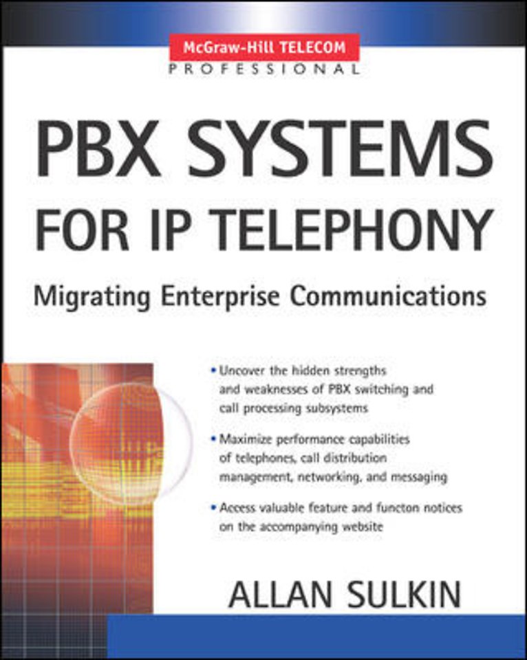 <H3>Enterprise Communications Systems Today <h3>Evolution of the Digital PBX, 1975-2000 <h3>PBX Call Processing Design <H3>PBX Switch Network Design <H3>PBX Traffic Engineering Analysis <H3>PBX Common Equipment <h3>Introduction to IP-PBX Systems <H3> VoIP Standards and Specifications <H3>Converged IP-PBX System Design <H3>Client/Server IP-PBX System Design <h3>LAN/WAN Design Guidelines for VoIP <H3>PBX Cabling Guidelines <H3>PBX Voice Terminals <H3>PBX Networking <H3>PBX Systems Management and Administration <h3>Appendix 1: Call Processing Feature/Function Glossary <H3>Appendix 2: PBX Cost and Pricing Issues <h3>Appendix 3: An IP-PBX RFP Example <H3>Appendix 4: PBX System Feature & Function Matrices</H3>
