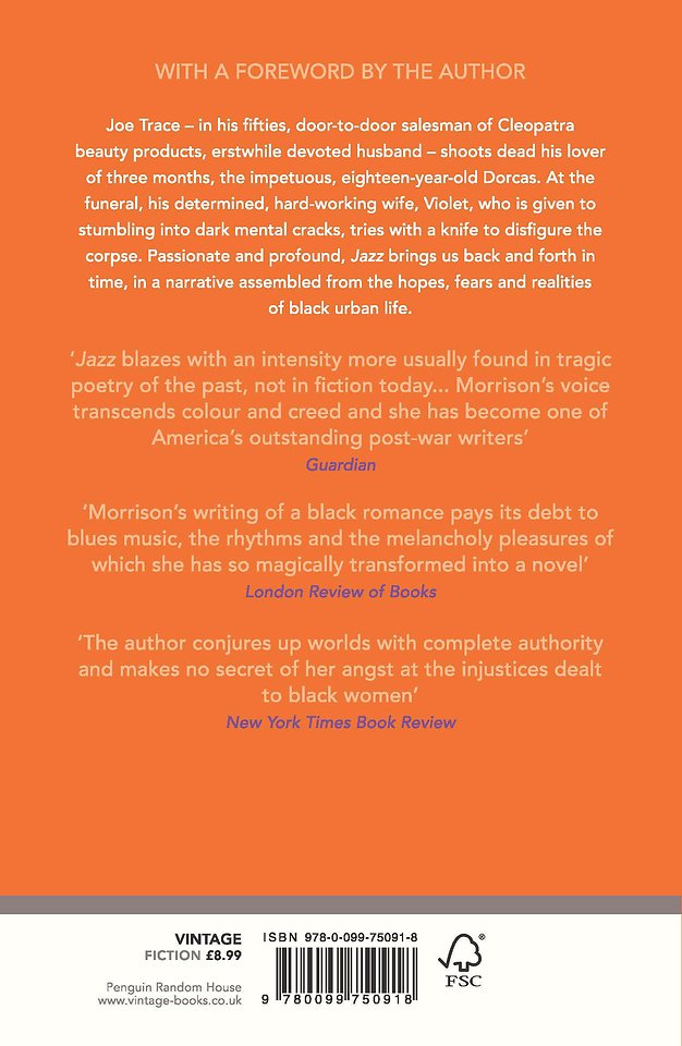 Joe Trace - in his fifties, door-to-door salesman of Cleopatra beauty products, erstwhile devoted husband - shoots dead his lover of three months, the impetuous, eighteen-year-old Dorcas. At the funeral, his determined, hard-working wife, Violet, who is given to stumbling into dark mental cracks, tries with a knife to disfigure the corpse.