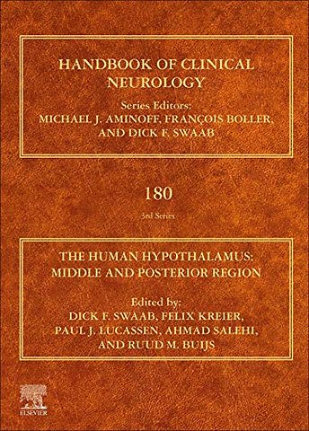 1. Introduction: The middle and posterior hypothalamus <br>SECTION 6 Supraoptic and paraventricular nucleus more than a neuroendocrine system<br>2. Vasopressin and oxytocin beyond the pituitary in the human brain<br>3. Central and peripheral release of oxytocin: Relevance of neuroendocrine and neurotransmitter actions for physiology and behavior <br>4. Organization of the neuroendocrine and autonomic hypothalamic paraventricular nucleus <br>5. Sex differences of oxytocin and vasopressin in social behaviors <br>6. Oxytocin, eating behavior, and metabolism in humans <br>7. The supraoptic and paraventricular nuclei in healthy aging and neurodegeneration<br>8. Perinatal stress and epigenetics <br>9. The hypothalamus in anxiety disorders <br>10. Congenital isolated central hypothyroidism: Novel mutations and their functional implications <br>SECTION 7 Zona incerta<br>11. The zona incerta system: Involvement in attention and movement<br>SECTION 8 Ventromedial nucleus and dorsomedial nucleus<br>12. The role of the dorsomedial and ventromedial hypothalamus in regulating behaviorally coupled and resting autonomic drive <br>SECTION 9 Circumventricular organs of the hypothalamus<br>13. The subfornical organ and organum vasculosum of the lamina terminalis: Critical roles in cardiovascular regulation and the control of fluid balance <br>14. Lamina terminalis fenestration: An important neurosurgical corridor <br>15. Arcuate nucleus, median eminence, and hypophysial pars tuberalis<br>16. Tanycytes in the infundibular nucleus and median eminence and their role in the blood–brain barrier <br>17. The human hypothalamic kisspeptin system: Functional neuroanatomy and clinical perspectives <br>18. Kisspeptin and neurokinin B expression in the human hypothalamus: Relation to reproduction and gender identity <br>19. The infundibular peptidergic neurons and glia cells in overeating, obesity, and diabetes<br>20. Hypothalamus and weight loss in amyotrophic lateral sclerosis <br>SECTION 10 Lateral tuberal nucleus<br>SECTION 11 Lateral hypothalamic area, perifornical area<br>21. The orexin/hypocretin system in neuropsychiatric disorders: Relation to signs and symptoms <br>22. Pleasure, addiction, and hypocretin (orexin) <br>SECTION 12 Tuberomamillary complex<br>23. Histamine receptors, agonists, and antagonists in health and disease <br>24. The tuberomamillary nucleus in neuropsychiatric disorders<br>SECTION 13 Subthalamic nucleus<br>25. Imaging of the human subthalamic nucleus <br>26. Neuropsychiatric effects of subthalamic deep brain stimulation <br>27. The subthalamic nucleus and the placebo effect in Parkinson's disease <br>SECTION 14 Corpora mamillaria, fornix, and mamillothalamic tract<br>28. Electrical stimulation of the fornix for the treatment of brain diseases <br>29. The contribution of mamillary body damage to Wernicke's encephalopathy and Korsakoff's syndrome