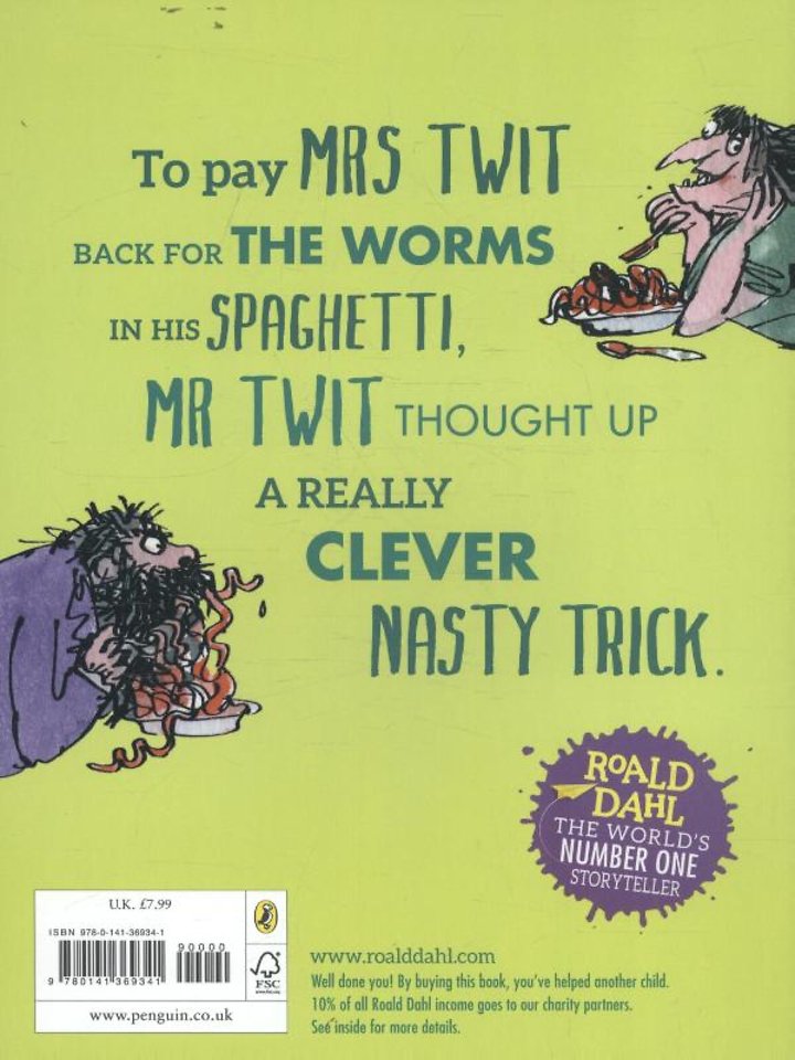 Mr Twit is a foul and smelly man. Mrs Twit is a horrible old hag with a glass eye. Together they make the nastiest couple you could ever hope not to meet. Down in their garden, the Twits keep Muggle-Wump the monkey and his family locked in a cage. But not for much longer, because the monkeys are planning to trick the Twits, once and for all...