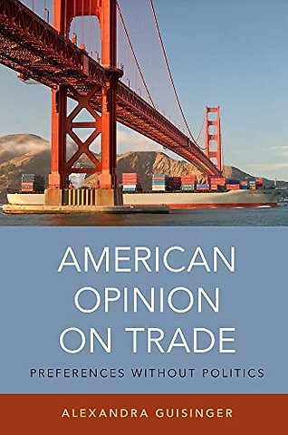 Alexandra Guisinger examines this apparent disconnect by examining the bases of Americans' trade preferences in today's post-industrial economy and why do so few politicians attempt to take advantage of these preferences. The changing American economy has made the direct effects of trade less obvious, making the benefits and costs more difficult to determine. In addition, information sources, including the media, have changed in content and influence over time, their influence varies across different groups of individuals, and partly as a result individuals hold countervailing beliefs about the effect of trade on their own and others' economic outcomes.