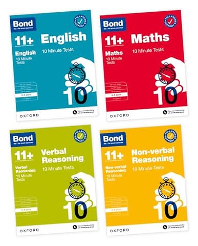 Bond 10 Minute Tests are perfect for bite-sized practice for all the core question types in the 11+ and other school entrance exams. This four-book bundle provides essential practice in all four core subjects: Maths, English, Verbal Reasoning and Non-verbal Reasoning. Each book features: