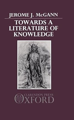 Towards a Literature of Knowledge was delivered as the Clark Lecture at Trinity College, and as the Carpenter Lecture at the University of Chicago, both in 1988. It is the fifth and final work in a series which began in 1983 with The Romantic Ideology. Among the related works, The Beauty of Inflections (OUP, 1985) is now available in paperback (Clarendon Paperbacks, #12.95).