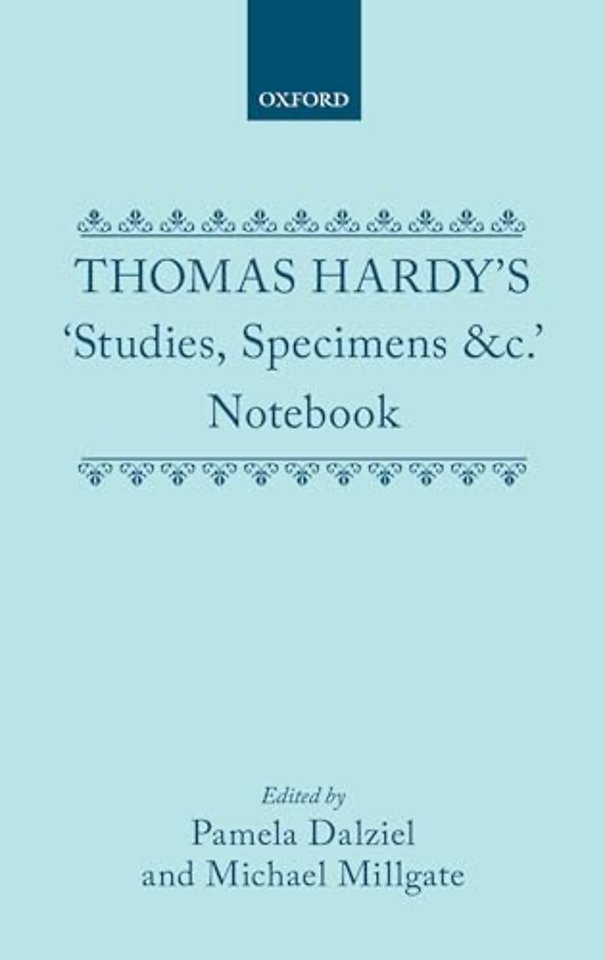 Thomas Hardy's Studies, Specimens &c. notebook stands almost alone as a witness to his exertions and aspirations of the 1860s, when he was already in his middle twenties but still working in London as an architectual assistant and only tentatively feeling his way towards as yet dimly glimpsed possibilities of literary expression and employment. Because so little documentation of any kind has survived for this early period of his life and work, the notebook is of extraordinary interest as containing detailed evidence of the untutored deliberateness with which Hardy was seeking to provide himself with a poetic background, educate himself in poetic techniques, and initiate a process from which he could perhaps emerge as a practising, even a publishing, poet. In private hands until very recently, and seen by only a very few scholars, Studies, Specimens &c.' dates from 1865-68, is entirely in Hardy's own hand, and consists of eighty-eight closely written pages of working memoranda, and quotations from other poets - mostly extracts a few words long in which underlining has been used to highlight individual images and word-usages. Although no drafts of actual poems are present, there are numerous instances of Hardy's seeking to generate a poetic, and sometimes erotic, language and imagery out of materials (e.g., an architectual textbook) apparently chosen precisley for their recalcitrance to such treatment.