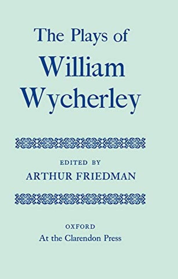 A scholarly edition of The Plays of William Wycherley by Arthur Friedman. The edition presents an authoritative text, together with an introduction, commentary notes, and scholarly apparatus.