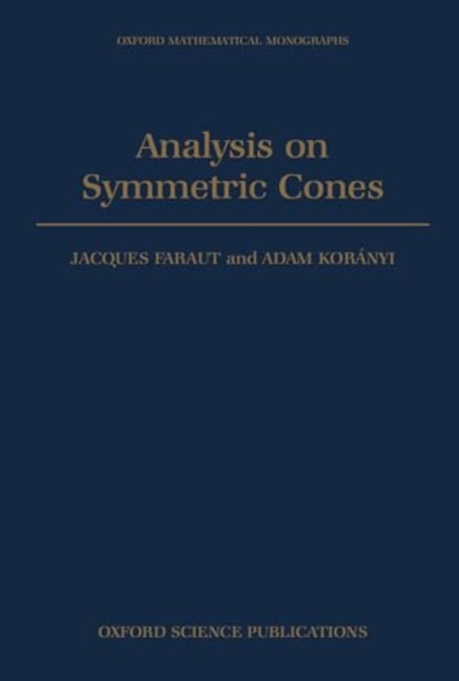 The present book is the first to treat analysis on symmetric cones in a systematic way. It starts by describing, with the simplest available proofs, the Jordan algebra approach to the geometric and algebraic foundations of the theory due to M. Koecher and his school. In subsequent parts it discusses harmonic analysis and special functions associated to symmetric cones; it also tries these results together with the study of holomorphic functions on bounded symmetric domains of tube type. It contains a number of new results and new proofs of old results.