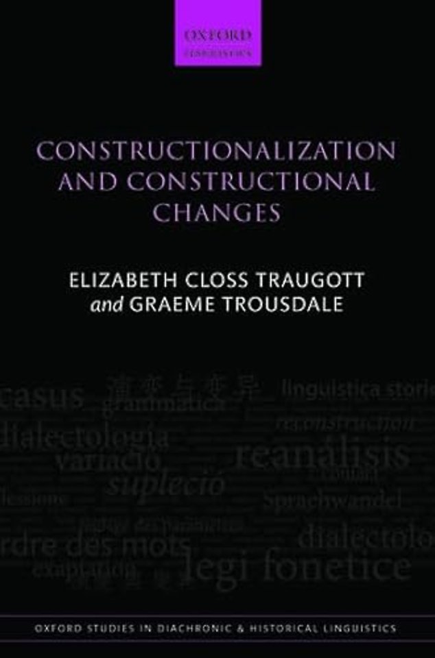 The book is organized in six chapters. The first outlines the approach and the questions to be addressed. The second reviews usage-based models of language change. The third considers the relation between grammatical constructionalization and grammaticalization. Chapters 4 and 5 focus respectively on lexical constructionalization and the role of context. The final chapter draws the authors' arguments together and outlines prospects for further research. Constructionalization and Constructional Changes propounds and demonstrates a new and productive approach to historical linguistics.