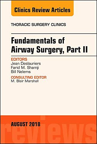 This issue of Thoracic Surgery Clinics of North America, guest edited by Drs. Jean Deslauriers, Farid Shamji, and Bill Nelems, is the second of two devoted to Fundamentals of Airway Surgery.  The editors have assembled expert authors to review the following topics: From Open to Bedside Percutaneous Tracheostomy; Anterior Mediastinal Tracheostomy: Past, Present, and Future; Extended Sleeve Resections; Bronchoplasties at the Segmental Level; Challenges of Carinal Resection and Reconstruction; Carinal Pneumonectomy; Management of Post-Pneumonectomy Broncho-Pleural Fistula: From Thoracoplasty to Trans-Sternal Closure; Tracheal Transplantation: State of the Art and Key Role of Blood Supply in its Success; Autologous Tracheal Replacement; Pathophysiology and Predictors of Bronchial Complications After Lung Transplantation; Management of Bronchial Complications After Lung Transplantation and Late Sequelae; Experiences with Prosthetic Airway Replacement: From the Use of Marlex Meshes to Tissue Engineering; Management of Acquired Benign Tracheo-Esophageal Fistulas; Strategies in the Treatment of Malignant Tracheoesophageal Fistulas; Recognition and Management of Life-Threatening Tracheo-Vascular Fistulae and How to Prevent Them; Principles of Urgent Management of Acute Airway Obstruction; Tracheo-Bronchial Injuries Secondary to Blunt Chest Trauma; Cricothyroid Approach for Emergency Access to the Airway; Use of Silicone Tubes in the Management of Complex Airway Problems; Management of the Airway after Tracheal Reconstruction; Importance of a Team Effort in the Success of Airway Surgery; and more!