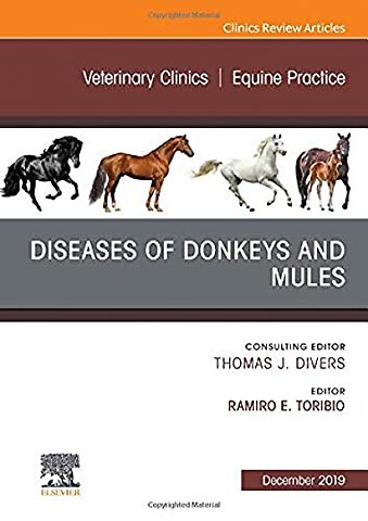 This issue of Veterinary Clinics: Equine Practice, guest edited by Dr. Ramiro Toribio in collaboration with Consulting Editor Dr. Thomas Divers, is devoted to Diseases of Donkeys and Mules. Topics include: Endocrine and metabolic disorders of donkeys; Gastrointestinal disorders of donkeys and mules; Clinical pathology of donkeys; Genetics, evolution, physiology in donkeys/mules; Nutrition and malnutrition; Donkey and mule welfare; Dermatological disorders of donkeys/mules; Anesthesia, analgesia, and sedation in donkeys/mules; Dental disorders of donkeys; Clinical evaluation and preventative care of the donkey; Respiratory disorders of donkeys; Donkey and mule behavior; Clinical Pharmacology of donkeys; Key aspects of donkey and mule reproduction; and Foot Care and Practical Farriery for the Donkey.
