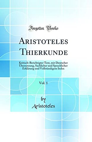 Aristoteles Thierkunde, Vol. 1: Kritisch-Berichtigter Text, mit Deutscher Ubersetzung, Sachlicher und Sprachlicher Erklarung und Vollstandigem Index (Classic Reprint)