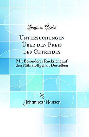 Untersuchungen Uber den Preis des Getreides: Mit Besonderer Rucksicht auf den Nahrstoffgehalt Desselben (Classic Reprint)