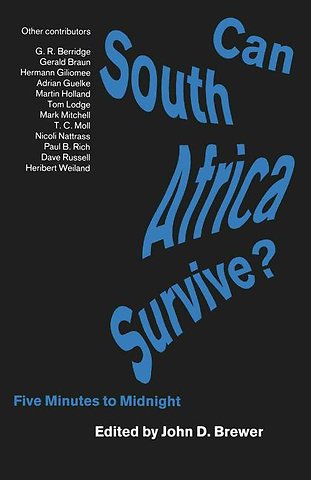 The role of the super powers, C.R.Berridge; sanctions against South Africa - punitive action or placebo politics?, Gerald Braun and Heribert Weiland; the European Community and sanctions against South Africa, Martin Holland; the Afrikaner empire strikes back - South Africa's regional policy, Gerald Braun; Afrikaner politics 1977-87 - from Afrikaner nationalist rule to central state hegemony, Hermann Giliomee; "probably the best laager in the world" - the record and prospects of South African economy, Terrence Moll; the KwaNatal Indaba and the politics of promising too much, Nicoli Nattrass; internal Black politics, John D.Brewer; the United Democratic Front - leadership and ideology, Tom Lodge; Black trade unions and political change in South Africa, Mark Mitchell and Dave Russell; constitutional change and international norms, Adrian Guelke; doctrines of political "change", Paul B.Rich; political impasse in South Africa - state capacities and crisis management, Mark Mitchell and Dave Russell; five minutes to midnight, John D.Brewer.