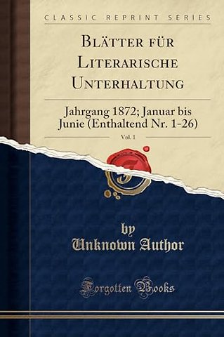 Blatter fur Literarische Unterhaltung, Vol. 1: Jahrgang 1872; Januar bis Junie (Enthaltend Nr. 1-26) (Classic Reprint)