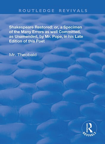 Published in 1971, this book is a restored copy of the many works of Shakespeare. This is a work originally from 1725, written in Old English, gives a commentary on the errors in the works of William Shakespeare by Pope. The play merited this treatment is Hamlet, with cross-referencing to his other plays.