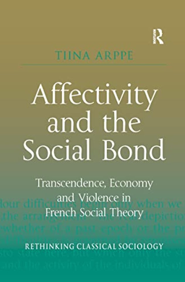 Affectivity and the Social Bond offers a fresh and original perspective on the relationship between affectivity and transcendence in nineteenth and twentieth century French social theory. Engaging in a conceptual analysis of the works of Comte, Durkheim, Bataille and Girard, this book exposes a major transformation brought about by the sociological gaze in understandings of affectivity and its relationship to both sociality and transcendence in nineteenth century social thought: the ambivalence between the transcendence of the social and the immanence of affective experience. Revealing the manner in which questions of violence and economy are intertwined in the sociological analysis of affectivity, Affectivity and the Social Bond reflects upon the problem of controlling affectivity, alongside the political implications and possible dangers of a sociological model which seeks the roots of the social bond first and foremost in the affective realm. A rigorous engagement with the classics of French social theory, their treatment of human affectivity and its relationship to social integration and regulation, this book will appeal not only to sociologists and social theorists, but also to those with interests in social and political philosophy and the history of ideas.