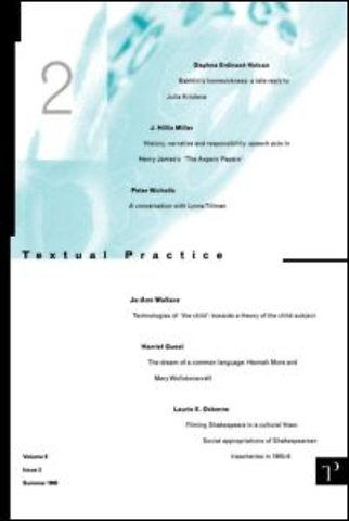 Since its launch in 1987 TP has been Britain's principla international journal of radical literary studies, continually pressing theory into new engagements. Today, as customary relations among disciplines and media are questioned and transformed, TP works at the turning points of theory with politics, history and texts. It is intrigued by the processes through which hitherto marginal cultures of ethnicity and sexuality are becoming conceptually central, and by the consequences of these diverse disturbances for educational and cultural institutions. Textual Practice is available both on subscription and from bookstores. For a Free Sample Copy or further subscription details please contact Trevina Johnson, Routledge Subscriptions, ITPS Ltd., North Way, Andover SP10 5BE. UK.