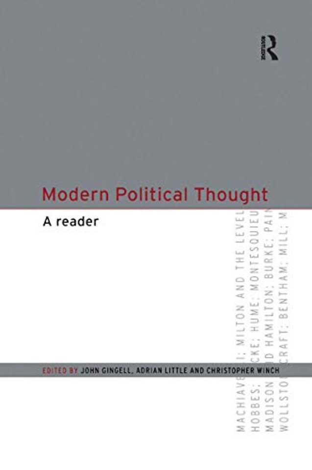 Modern Political Thought: A Reader is an excellent introduction to the key works of the major political thinkers from the English Civil War to the end of the 19th Century. It draws together the most important parts of seminal works of political thought such as Hobbes' Leviathan, Locke's Treatises, Rousseau's The Social Contract, Mill's On Liberty, together with substantial extracts from Machiavelli's The Prince and Marx's Capital. Accessible introductions are provided for each thinker, explaining their lives and works, and placing them in the historical context in which they worked and wrote.