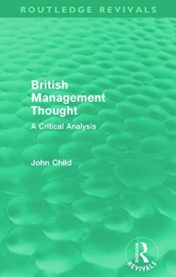 Utilizing detailed documentary evidence, Dr. Child traces and assesses the emergence and development of management thinking in Britain over the last hundred years. He considers the organizational and social problems faced by managers, and how management thinkers have attempted to provide solutions. The book demonstrates how social science research has today brought to light many deficiencies in management thought. By applying the perspectives of the sociology of knowledge, Dr Child examines how and why ideological considerations seriously weakened the practical utility of many management writings. He also discusses the important problems raised for management education by these findings, illustrating this with some of his own research into management teaching.