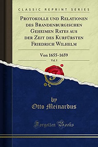 Protokolle Und Relationen Des Brandenburgischen Geheimen Rates Aus Der Zeit Des Kurfursten Friedrich Wilhelm, Vol. 5