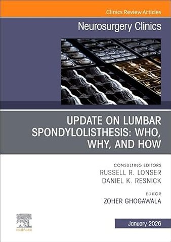 In this issue of Neurosurgery Clinics, guest editor Dr. Zoher Ghogawala brings his considerable expertise to the topic of Update on Lumbar Spondylolisthesis: Who, Why, and How. Top experts discuss key topics such as guidelines for the treatment of lumbar spondylolisthesis; natural history of lumbar spondylolisthesis; MIS options for lumbar spondylolisthesis; fusion as the optimal treatment for lumbar spondylolisthesis; lateral fusion for lumbar spondylolisthesis; and many more.Contains 15 relevant, practice-oriented topics including global practice variation in the treatment of lumbar spondylolisthesis; optimizing fusion when treating lumbar spondylolisthesis; awake surgery for lumbar spondylolisthesis; optimizing bone health in the treatment of spondylolisthesis; future directions; and moreProvides in-depth clinical reviews on lumbar spondylolisthesis: who, why, and how, offering actionable insights for clinical practicePresents the latest information on this timely, focused topic under the leadership of experienced editors in the field. Authors synthesize and distill the latest research and practice guidelines to create clinically significant, topic-based reviews