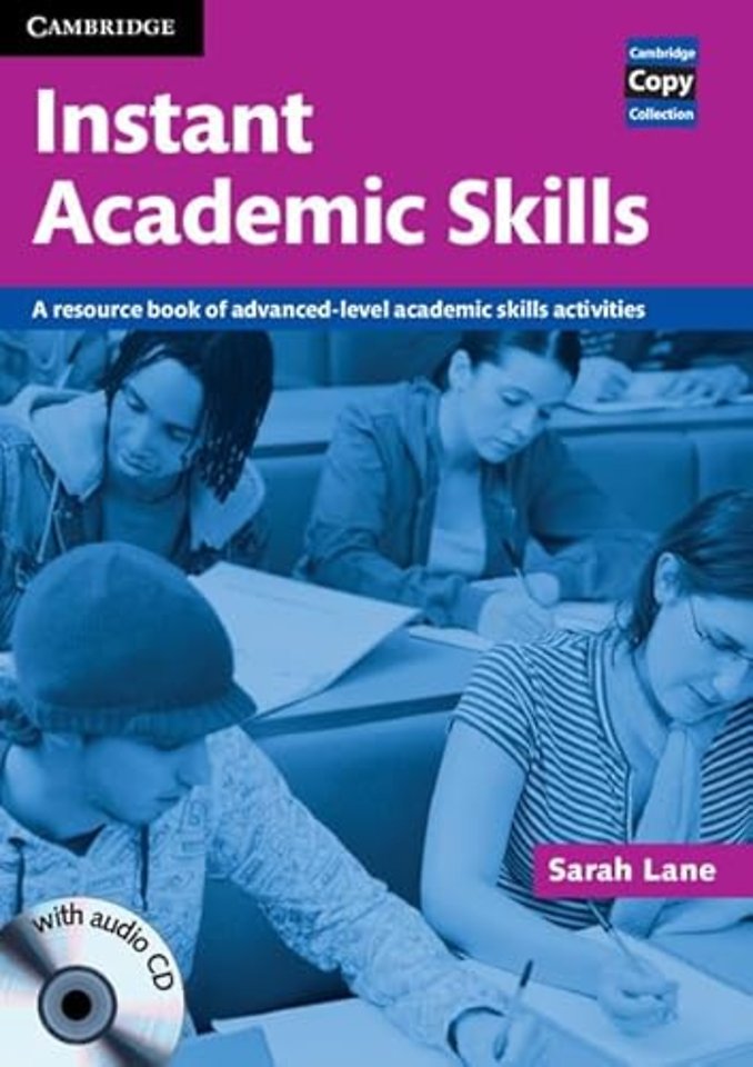A photocopiable resource book for teachers of English for Academic Purposes. Instant Academic Skills provides ready-to-teach, photocopiable lessons for busy teachers who want to give their students extra practice in general academic skills. The lessons cover all four skills (listening, speaking, reading and writing) and can be taught individually or as a learning 'unit'. Challenging activities develop skills vital to academic success such as identifying key ideas and details, predicting content and efficient note-taking, while lively speaking tasks get learners ready to participate in debates and presentations. The Audio CD includes a variety of native and non-native accents in typical academic scenarios such as lectures, interviews and formal talks.