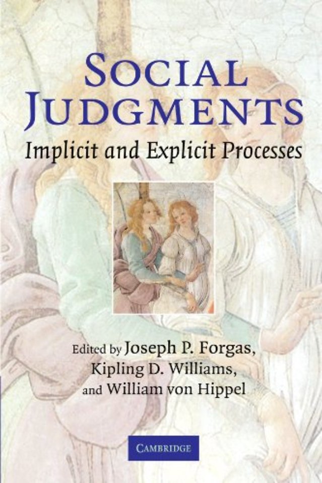 1. Responding to the social world: explicit and implicit processes in social judgments Joseph P. Forgas; 2. Biases in social judgment: design flaws or design features? Martie G. Haselton and David M. Buss; 3. Reflexive and reflective judgment processes: a social cognitive neuroscience approach Matthew Lieberman; 4. Decomposing the person perception process: cerebral hemispheric asymmetries in social perception Michael A. Zarate and Colby J. Stoever; 5. The psychodynamics of social judgments: an attachment theory perspective Phillip R. Shaver and Mario Mikulincer; 6. Towards a social psychology of person judgments: implications for person perception accuracy and self-knowledge David C. Funder; 7. A parametric unimodel: of human judgment: integrating dual-process frameworks in cognition from a single-mode perspective Arie W. Kruglanski, Wo Young Chun, Hans Peter Erb, Antonio Peirro, Lucia Mannetti and Scott Spiegel; 8. Social judgments based on pseudo-contingencies: a forgotten phenomenon Klaus Fiedler and Peter Freytag; 9. The size of context effects in social judgment Herbert Bless, Norbert Schwarz and Michaela Wanke; 10. Affective influences on social judgments and decisions: implicit and explicit processes Joseph P. Forgas and Rebekah East; 11. Hot cognition and social judgments: when and why do descriptions influence our feelings? Diederik A. Stapel; 12. Attitudinal process vs. content: the role of information processing biases in social judgment and behavior William von Hippel, Patrick Vargas and Denise Sekaquaptewa; 13. The importance of the question in the judgment of abilities and opinions via social comparison Jerry Suls, Rene Martin and Ladd Wheeler; 14. Consequences of automatic goal pursuit and the case of nonconscious mimicry Tanya L. Chartrand and Valerie E. Jefferis; 15. Implicit and explicit processes in social judgments: the role of goal-based explanations John McClure, Robbie M. Sutton and Denis J. Hilton; 16. Impact of ostracism on social judgments and decisions: explicit and implicit processes Kipling D. Williams, Trevor I. Case and Cassandra Govan; 17. To control or not to control stereotypes: separating the implicit and explicit process of perspective-taking and suppression Adam D. Galinsky, Paul V. Martorana and Gillian Ku; 18. Responding to the social world: attributions and stereotype-based judgments Lucy Johnston and Lynden Miles; 19. Implicit and explicit process in social judgment: deep and high Marilynn B. Brewer.