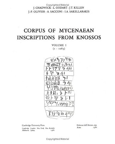 This is the definitive publication, by the world's major Mycenaean epigraphists, of the Linear B tablets found by Sir Arthur Evans at Knossos. It includes all the fragments discarded by Evans and subsequently recovered from the museum storerooms and elsewhere, and represents the results of thirty years' work on reconstituting the documents. Each tablet or fragment is given as a photograph, a drawing and in transcription. The notes are purely textual.