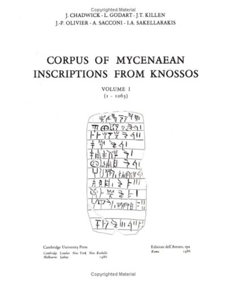 Corpus of Mycenaean Inscriptions from Knossos: Volume 1, 1–1063