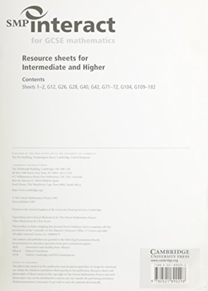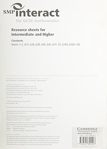 SMP Interact for GCSE Mathematics Resource Sheets for Intermediate and Higher