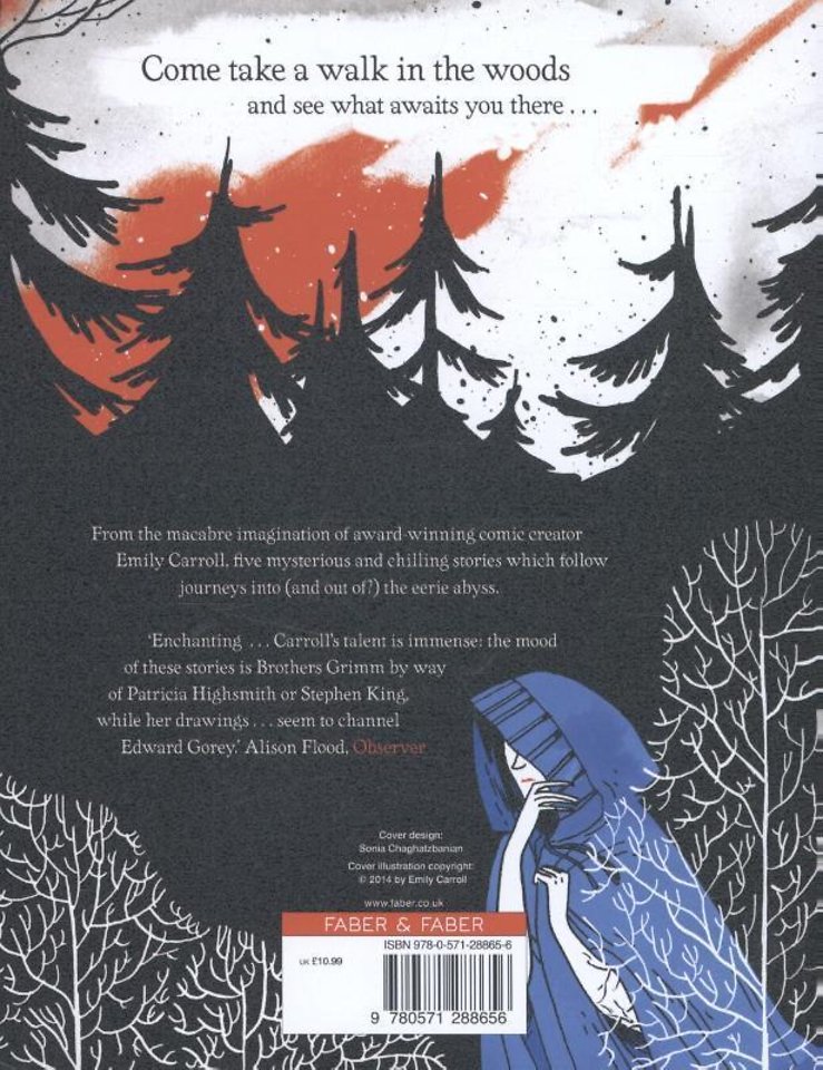 Most strange things do.'Five mysterious, spine-tingling stories follow journeys into (and out of?) the eerie abyss. These chilling tales spring from the macabre imagination of acclaimed and award-winning comic creator Emily Carroll. Come take a walk in the woods and see what awaits you there...