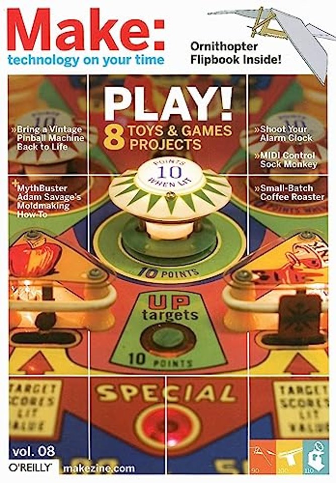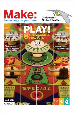 Get ready to play when MAKE Volume 08, our "Toys and Games" issue, hits the stands. You'll learn how to build a wind-up bird that really flies, how to restore an old pinball machine, and learn the secret history of the world's best-selling computer game from Myst's co-creator. You'll also meet a well-known toy inventor and learn how to make molds and casts with MythBusters star Adam Savage.