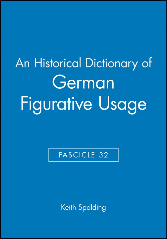 Professor Spalding′s Historical Dictionary of German Figurative Usage has been appearing in separate fascicles since 1952. The work presents information about German figurative speech and its history in dictionary form. It covers phrases, proverbs and quotations found in German literature from 1750 onwards.