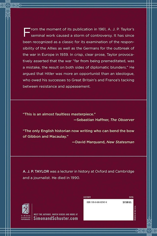 Published in 1961, The Origins of the Second World War is a classic of modern history. A.J.P. Taylor's years of research helped change the long-accepted view that Adolf Hitler had wanted and planned in detail for a war. With clear and relatable prose, Taylor depicts the diplomatic mistakes from both the Allied and Axis powers that lead to the outbreak of World War II. A groundbreaking work, The Origins of the Second World War "is an almost faultless masterpiece, perfectly proportioned, perfectly controlled" (The Observer).