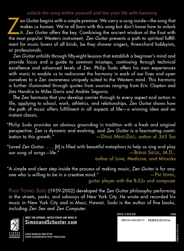 Philip Sudo offers his own experiences with music to enable us to rediscover the harmony in each of our lives and open ourselves to Zen awareness uniquely suited to the Western Mind. Through fifty-eight lessons that provide focus and a guide, the reader is led through to Zen awareness. This harmony is further illuminated through quotes from sources ranging from Eric Clapton and Jimi Hendrix to Miles Davis. From those who have never strummed a guitar to the more experienced, Zen Guitar shows how the path of music offers fulfillment in all aspects of life—a winning idea and an instant classic.