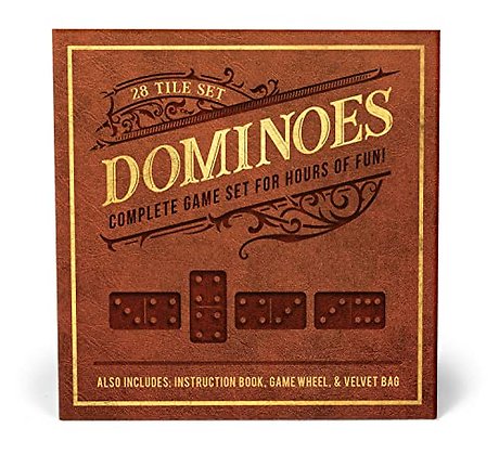Dominoes includes everything you need to enjoy one of the world’s oldest and most versatile games, including a 28-tile dominoes set, velvet storage bag, instruction book, and game wheel.