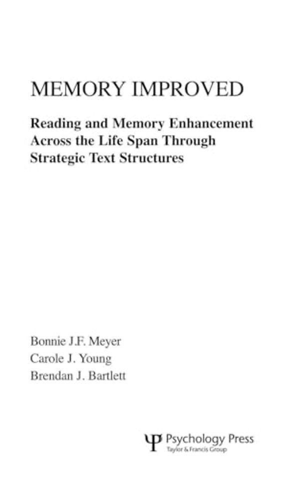 This unique text presents a systematic study of a proven method for increasing the memory and reading comprehension of older adults by using a program based on discourse processing. The program facilitates the encoding and retrieval of information through a reading strategy plan utilizing top-level structures in the text. The authors of this volume provide student and teacher training manuals for the program as well as a review of the literature, data tables and graphs; an extensive bibliography; and five 1 1/2 hour sessions to improve memory and reading comprehension.