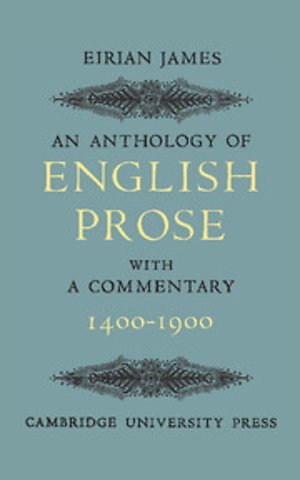 Preface; Texts; The Anthology: 1. Thomas Malory, 1485, Le Morte d'Arthur; 2. Lord Berners, 1523–5, Sir John Froissart: Of the Chronicles of England etc. (translation); 3. Thomas More, 1551, Utopia (in the translation of Ralph Robynson); 4. Richard Hakluyt, 1598–1600, Principal Navigation, Voyages and Discoveries of the English Nation; 5. Thomas North, 1579, Plutarch's Lives (translation); 6. Philip Sidney, 1595, An Apologie for Poetrie; 7. John Lyly, 1580, Euphues and his England; 8. Thomas Nashe, 1584, The Unfortunate Traveller; 9. Francis Bacon, 1597, Essays, or Counsels Civil and Moral; 10. Authorised version of the Bible, 1611, Ecclesiastes; 11. Thomas Dekker, 1603, The Wonderful Year 1603; 12. John Donne, 1640, LXXX Sermons; 13. Robert Burton, 1621, The Anatomy of Melancholy; 14. Izaak Walton, 1653, The Compleat Angler; 15. Jeremy Taylor, 1650–1, The Rule and Exercises of Holy Dying; 16. Thomas Browne, 1658, Urn Burial; 17. John Milton, 1644, Areopagitica; 18. Lord Clarendon, 1702–4, The History of the Rebellion and Civil Wars in England; 19. John Bunyan, 1678, The Pilgrim's Progress; 20. Thomas Traherne (1908), Centuries of Meditations; 21. Samuel Pepys, (1825), Diary; 22. John Aubrey, (1813), Brief Lives; 23. John Dryden, 1688, An Essay of Dramatick Poesy; 24. Samuel Johnson, 1779–81, Lives of the Poets; 25. Daniel Defoe, 1722, The Life of Colonel Jack; 26. Jonathan Swift, 1704, A Tale of a Tub; 27. Joseph Addison, 1711, The Spectator; 28. Richard Steele, 1711, The Spectator; 29. Samuel Richardson, 1747–8, Clarissa Harlowe; 30. Henry Fielding, 1749, Tom Jones; 31. Tobias Smollett, 1751, Peregrine Pickle; 32. Laurence Sterne, 1760–7, The Life and Opinions of Tristram Shandy; 33. James Boswell, 1791, Life of Samuel Johnson; 34. Horace Walpole, 1781, Letter to Lady Ossory; 35. Edward Gibbon, 1776–88, The Decline and Fall of the Roman Empire; 36. Edmund Burke, 1790, Reflections on the French Revolution; 37. Jane Austen, 1816, Emma; 38. Walter Scott, 1818, The Heart of Mid-Lothian; 39. William Hazlitt, 1823, The Plain Speaker; 40. Samuel Taylor Coleridge, 1817, Biographia Literaria; 41. John Keats, 1818, Letter to Richard Woodhouse; 42. Charles Lamb, 1823, Essays of Elia; 43. Thomas De Quincey, 1822, Confessions of an English Opium-eater; 44. Walter Savage Landor, 1824–9, Imaginary Conversations; 45. Thomas Carlyle, 1837, The French Revolution; 46. Lord Macaulay, 1843, Critical and Historical Essays; 47. Emily Brontë, 1847, Wuthering Heights; 48. Charlotte Brontë, 1853, Villette; 49. Charles Dickens, 1836–7, The Posthumous Papers of the Pickwick Club; 50. William Makepeace Thackeray, 1847–8, Vanity Fair; 51. John Ruskin, 1843–60, Modern Painters; 52. Walter Pater, 1873, The Renaissance; 53. John Henry Newman, 1864, Apologia pro vita sua; 54. Matthew Arnold, 1865, Essays in Criticism; 55. George Elliot, 1860, The Mill on the Floss; 56. Thomas Hardy, 1891, Tess of the d'Urbevilles; 57. Lewis Carroll, 1872, Through the Looking-glass; 58. Robert Louis Stevenson, 1881–3, Treasure Island; 59. George Meredith, 1879, The Egoist; 60. Samuel Butler, 1903, The Way of All Flesh; Commentary; Glossary; A list of the most accessible editions.
