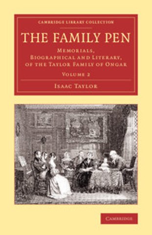 Isaac Taylor (1787–1865) was known as Isaac Taylor of Stanford Rivers, to distinguish him from his father, Isaac Taylor of Ongar, engraver and dissenting minister. He, his brother Jefferys, and their sisters Ann and Jane, were all writers, and their mother was the well-known 'Mrs Taylor of Ongar', some of whose books are also reissued in this series. The younger Isaac felt drawn to the Church of England, and made a name for himself with studies of the Church Fathers and the classics (he is said to have coined the word 'patristic'). This two-volume collection of writings by three generations of the Taylor family was compiled and published in 1867 by the Isaac Taylor of the next generation. Volume 2 contains essays and verses by the four siblings, their father Isaac, and a cousin, Jemima, of which the most notable is the long short story 'Display' by Jane Taylor.