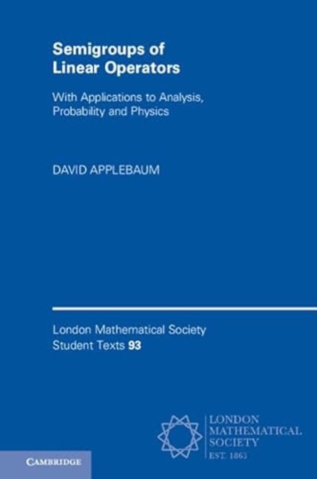 The theory of semigroups of operators is one of the most important themes in modern analysis. Not only does it have great intellectual beauty, but also wide-ranging applications. In this book the author first presents the essential elements of the theory, introducing the notions of semigroup, generator and resolvent, and establishes the key theorems of Hille–Yosida and Lumer–Phillips that give conditions for a linear operator to generate a semigroup. He then presents a mixture of applications and further developments of the theory. This includes a description of how semigroups are used to solve parabolic partial differential equations, applications to Levy and Feller–Markov processes, Koopmanism in relation to dynamical systems, quantum dynamical semigroups, and applications to generalisations of the Riemann–Liouville fractional integral. Along the way the reader encounters several important ideas in modern analysis including Sobolev spaces, pseudo-differential operators and the Nash inequality.
