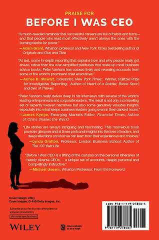 It started with three questions at Davos. The younger Peter Vanham looked to the answers from the elite leaders he asked to validate his own career choice, and the rich, private wisdom he received revealed more about building a career than he d found anywhere else. He shares it all with you in Before I Was CEO.