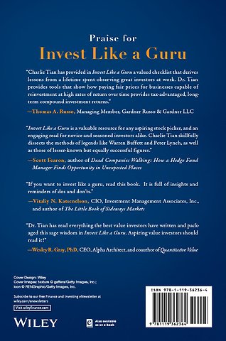 Invest Like a Guru provides an invaluable resource for high–quality–focused value investing, with expert insight and practical tools for implementation. Written by the man behind GuruFocus.com, this book expands on the site′s value strategies and research tools to provide a primer for those exploring pathways to higher returns at lower risk. The book begins with an insightful explanation of high–quality–focused value investing concepts, then quickly moves into practical, detailed guidance on analysis, valuation, key factors, and risks to avoid. Case studies demonstrate real–world application of various analysis methods, and the discussion walks you through important calculations using real examples. Author Charlie Tian draws upon his own experiences and lessons learned to provide true insight on high–quality–focused value investing as a strategy, providing both reference and expert advice in this singularly useful guide.
