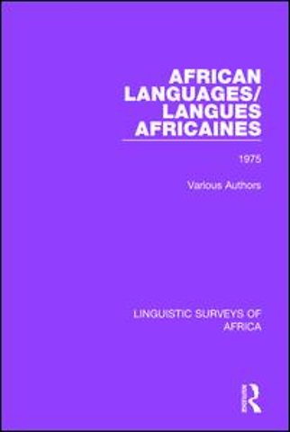 Volume 1 of African Languages include articles originally published in 1975 and written in French and English on educational, literary, cultural, historical and socio-linguistic aspects of language in Africa, as well as descriptive and comparative studies. Among others there are chapters on African oral literature, the standardization of languages and education in Nigeria and a description of Shona spelling.