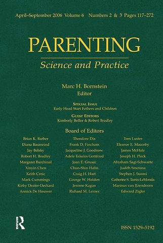 The Early Head Start Father Studies: Design, Data Collection, and Summary of Father Presence in the Lives of Infants and Toddlers, The Meaning of “Good Fatherhood:” Low-Income Fathers’ Social Constructions of Their Roles, Fathering in Infancy: Mutuality and Stability Between 8 and 16 Months, Relation Between Father Connectedness and Child Outcomes, Is One Good Parent Good Enough? Patterns of Mother and Father Parenting and Child Cognitive Outcomes at 24 and 36 Months, Two Studies of Father Involvement in Early Head Start Programs: A National Survey and a Demonstration Program Evaluation, Exposure of Low-Income Families and Their Children to Neighborhood Violence and Paternal Antisocial Behavior, Lessons Learned from Early Head Start for Fatherhood Research and Program Development