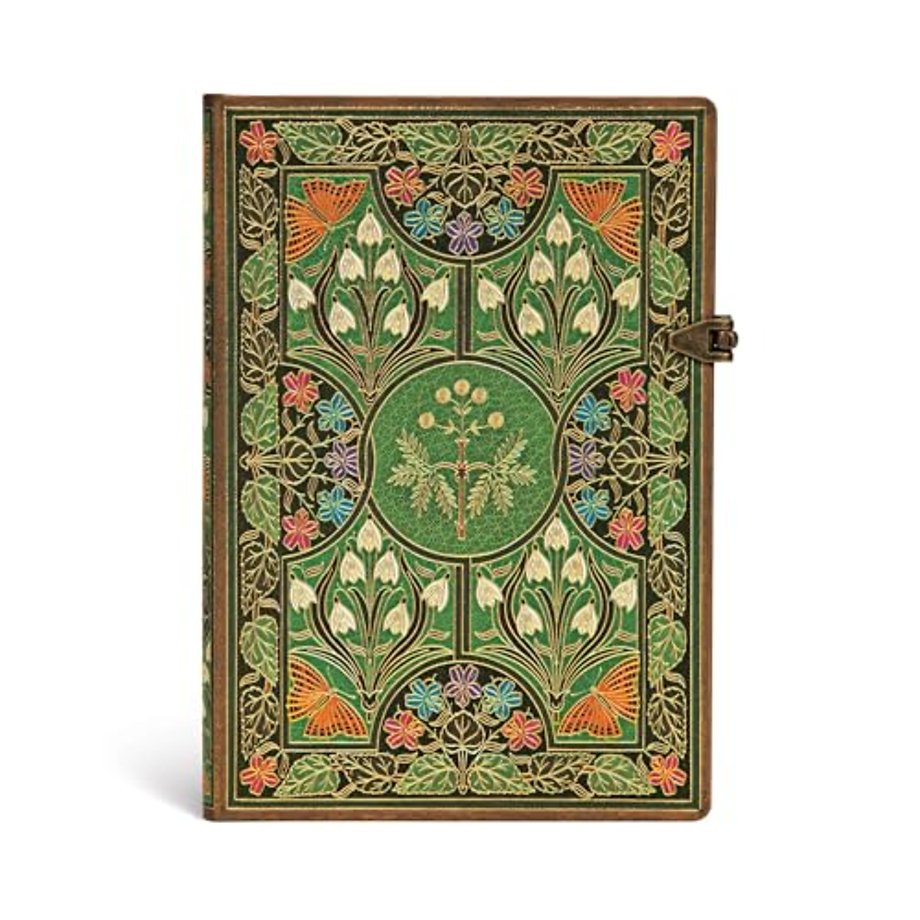 The design reproduced on this journal cover, originally crafted by Riviere and Son, centres around a sensitive plant surrounded by other richly hued flowers, foliage and butterflies.