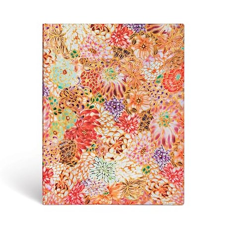 Our Kikka soft cover notebook reproduces Michiko Kamee’s “full of chrysanthemum” design originally hand-painted with gold overglaze and colour on china by employing Kyo-Satsuma. In this Paperblanks Flexi cover design the viewer can see hints of the kaleidoscope of flowers in bloom, as well as fine boned artistry in every brush stroke and hue.