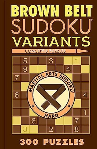 The Martial Arts Puzzle Series is ranked by different color belts. The Brown Belt volume contains hard puzzles, and features sudoku variations such as overlapping grids, irregular regions, "killer" sudoku, diagonals, and more.