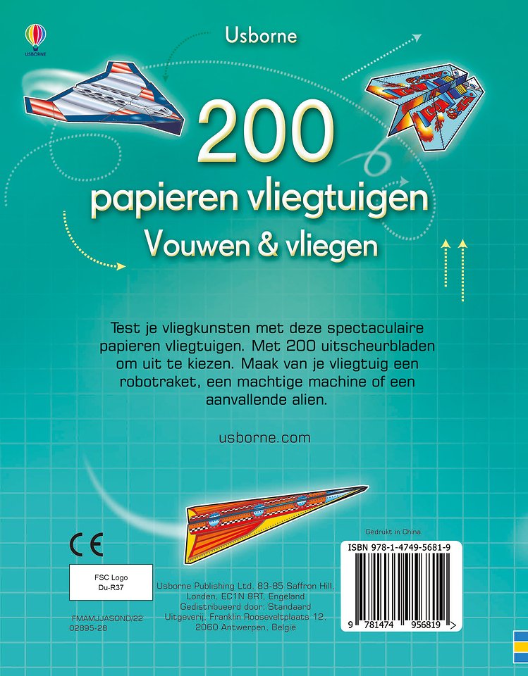 Elk blad van dit blok met scheurbladen kan heel gemakkelijk gevouwen worden tot een papieren vliegtuigje met felgekleurde tekeningen.De cover vouwt open, zodat de eenvoudige instructies om elk type vliegtuig te vouwen en tips om het te laten vliegen makkelijk te volgen zijn.Goed voor uren speelplezier met het hele gezin.