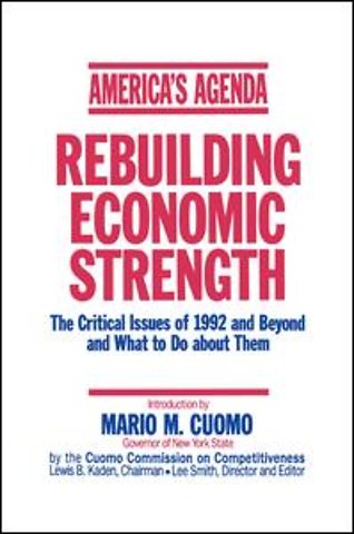 Cuomo's Commission on Competitiveness argues that America must reform its economic and social policies and institutions to reverse the weakening of its industrial leadership, the erosion of living standards and escalating social problems. Topics include public investment, urban poverty, health care, the environment, fiscal policy and international strategies.