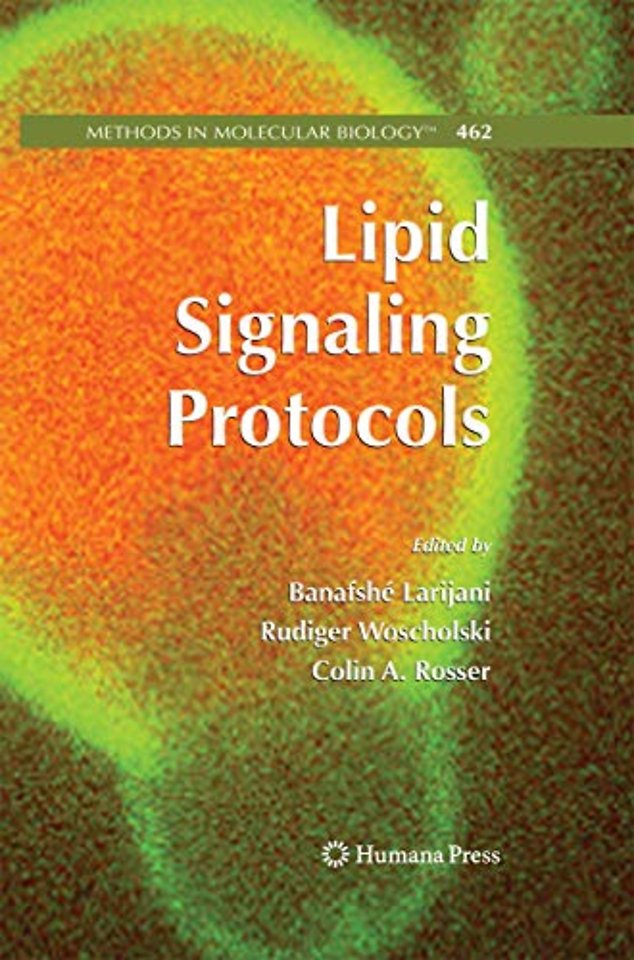 PART 1. Lipid systems and techniques Introduction – by Mike Wakelam 1) Eicosanoids: generation and detection in mammalian cells Valerie B. O’Donnell, Ben Maskrey and Graham W. Taylor. 2) Lipidomic analysis of phospholipids and related structures by liquid chromatography-mass spectrometry Trevor R. Pettitt 3) Measurement of Polyphosphoinositides in Cultured Mammalian Cells Frank T. Cooke 4) Inositol lipid-dependent functions in Saccharomyces cerevisiae: analysis of phosphatidylinositol phosphates Stephen K. Dove and Robert H. Michell 5) Methods for the determination of the mass of nuclear PtdIns4P, PtdIns5P and PtdIns(4,5)P2 David R. Jones, Yvette Bultsma and Nullin Divecha 6) Lipid Quantification and Structure Determination of Nuclear Envelope Precursor Membranes in the Sea Urchin Marie Garnier-Lhomme, Erick J. Dufourc, Banafshé Larijani and Dominic Poccia 7) Solution and solid state NMR of lipids Axelle Grelard, Anthony Couvreux, Cécile Loudet and Erick J. Dufourc 8) Spatial localisation of PIP2 in phase separated giant unilamellar vesicles with a fluorescent PLC-delta 1 PH domain Xavier Mulet, Erika Rosivatz, Ka Kei Ho, Béatrice L.L.E. Gauthé, Oscar Ces, Richard H. Templer, Rudiger Woscholski 9) Studying cell-to-cell interactions: an easy method of tethering ligands on artificial membranes Sebastian J. Fleire and Facundo D. Batista 10) Ceramide-induced transbilayer (flip-flop) lipid movement in membranes F.-Xabier Contreras, Ana-Victoria Villar, Alicia Alonso and Félix M. Goñi 11) Effects of Sterols on the Development and Ageing of Caenorhabditis elegans Eun-Young Lee, Pan-Young Jeong, Sun-Young Kim, Yhong-Hee Shim, and Young-KiPaik 12) Proteomic Analysis of the Sterol-Mediated Signalling Pathway in Caenorhabditis elegans Byung-Kwon Choi, Yun-Kyung Shin, Eun-Young Lee, Pan-Young Jeong, Yhong-Hee Shim and Young-Ki Paik PART 2. Lipid metabolism and recognition Introduction - by Robin Irvine 13) Studying the subcellular localisation and DNA-binding activity of FoxO transcription factors, downstream effectors of PI3K/Akt. Abdelkader Essafi, Ana R. Gomes, Karen M. Pomeranz, Aleksandra K. Zwolinska, Rana Varshochi, Ursula B. McGovern and Eric W.-F. Lam 14) Measurement of PTEN Activity In Vivo by Imaging Phosphorylated Akt Erika Rosivatz and Rudiger Woscholski 15) Analysis of phosphatidylinositol 3,4,5 trisphosphate 5-phosphatase activity by in vitro and in vivo assays Lisa M. Ooms, Jennifer M. Dyson, Anne M. Kong and Christina A. Mitchell 16) Measuring Phospholipase D activity in Insulin Secreting Pancreatic ß-cells and Insulin Responsive Muscle Cells and Adipocytes Rosanna Cazzolli, Ping Huang, Shuzhi Teng and William E. Hughes 17) Protein Kinase C as an effector of lipid derived second messengers Marie-Hélène Paclet, Jan K. Davidson-Moncada, Guillermo López-Lluch, Dongmin Shao and Lodewijk V Dekker 18) Detection of myotubularin phosphatases activity on phosphoinositides in vitro and ex vivo Holger Maria Rohde, Hélène Tronchère, Bernard Payrastre and Jocelyn Laporte 19) Quantification of Multiple Phosphatidylinositol 4-Kinase Isozyme Activities in Cell Extracts Mark G. Waugh, Shane Minogue and J. Justin Hsuan 20) Phospholipid-interacting proteins by solution state NMR spectroscopy Keiichiro Kami, Sundaresan Rajesh and Michael Overduin 21) Revealing Signalling in Single Cells by